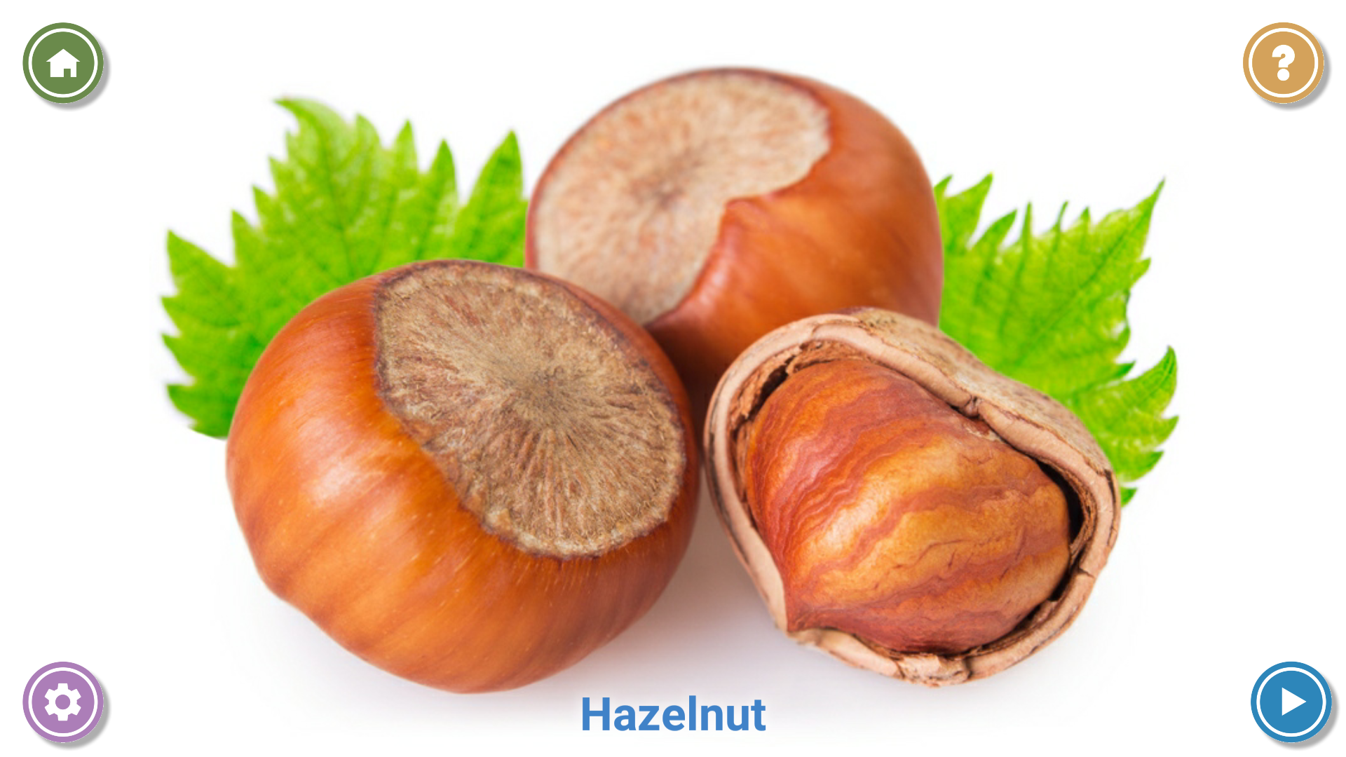 * 4 separate categories: learn fruits, learn vegetables, berries and nuts.