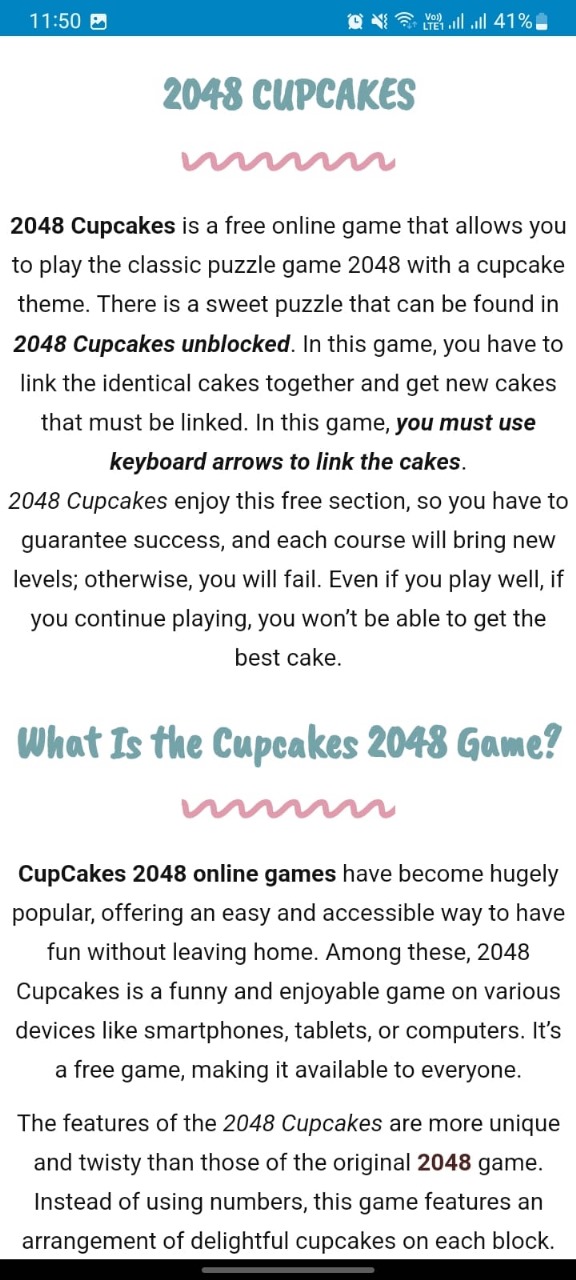 Players make various strategies to score high in 2048 Cupcakes. A popular technique involves carefully moving the cupcakes to ensure that similar ones combine, maximizing points. Another trick is positioning the highest-value cupcake in a corner and skillfully moving the other blocks around it. These methods prevent the high-value cupcakes from getting caught and help achieve better scores.CupCakes 2048 online games have become hugely popular, offering an easy and accessible way to have fun without leaving home. Among these, 2048 Cupcakes is a funny and enjoyable game on various devices like smartphones, tablets, or computers. It’s a free game, making it available to everyone.