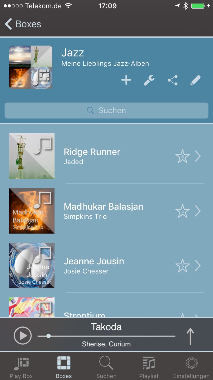 Do you want quick access to your music even if you are not at home? The Albums! Play Box presents your favourite music and you can access it directly. Albums! allows fast access to any artists and albums either directly or by Auto Boxes that fill automatically.