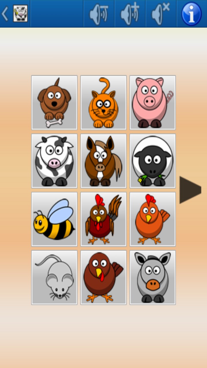 A designed for children soundboard with cartoons graphics and a lot of animal sounds.