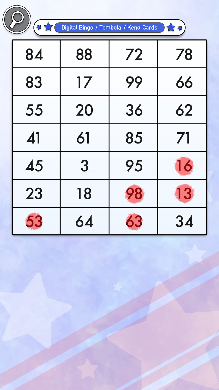 • Enter called numbers using the on-screen mobile keypad, which automatically checks and highlights matches across all cards at once