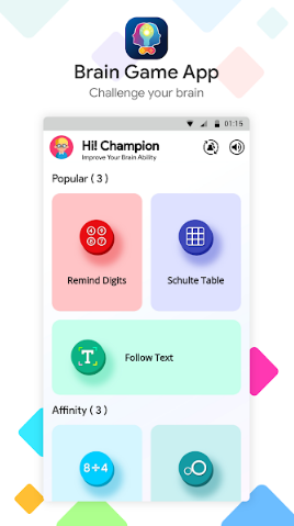 Each game will sharpen players' minds and will help them learn how to memorize color, shape, number, follow text, colors, play Schulte table, sort sequence, and more. While having fun and challenging themselves at every level, players can take a skill test. Also, they will be able to test their reflexes.