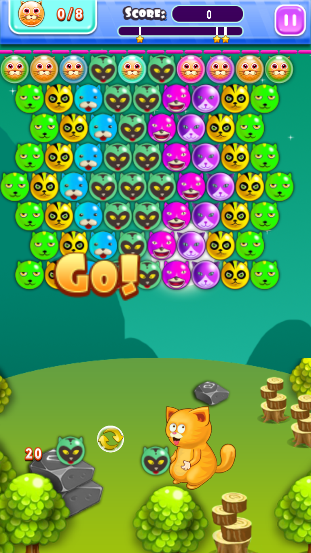 ★ Puzzle mode throught 100 + levels. Tap on screen select level to play. You can swap to shoot match three or more bubbles to gain points and. You try collect birds on the screen to level up before your bubbles is zero, and try to get 3 stars on each level.