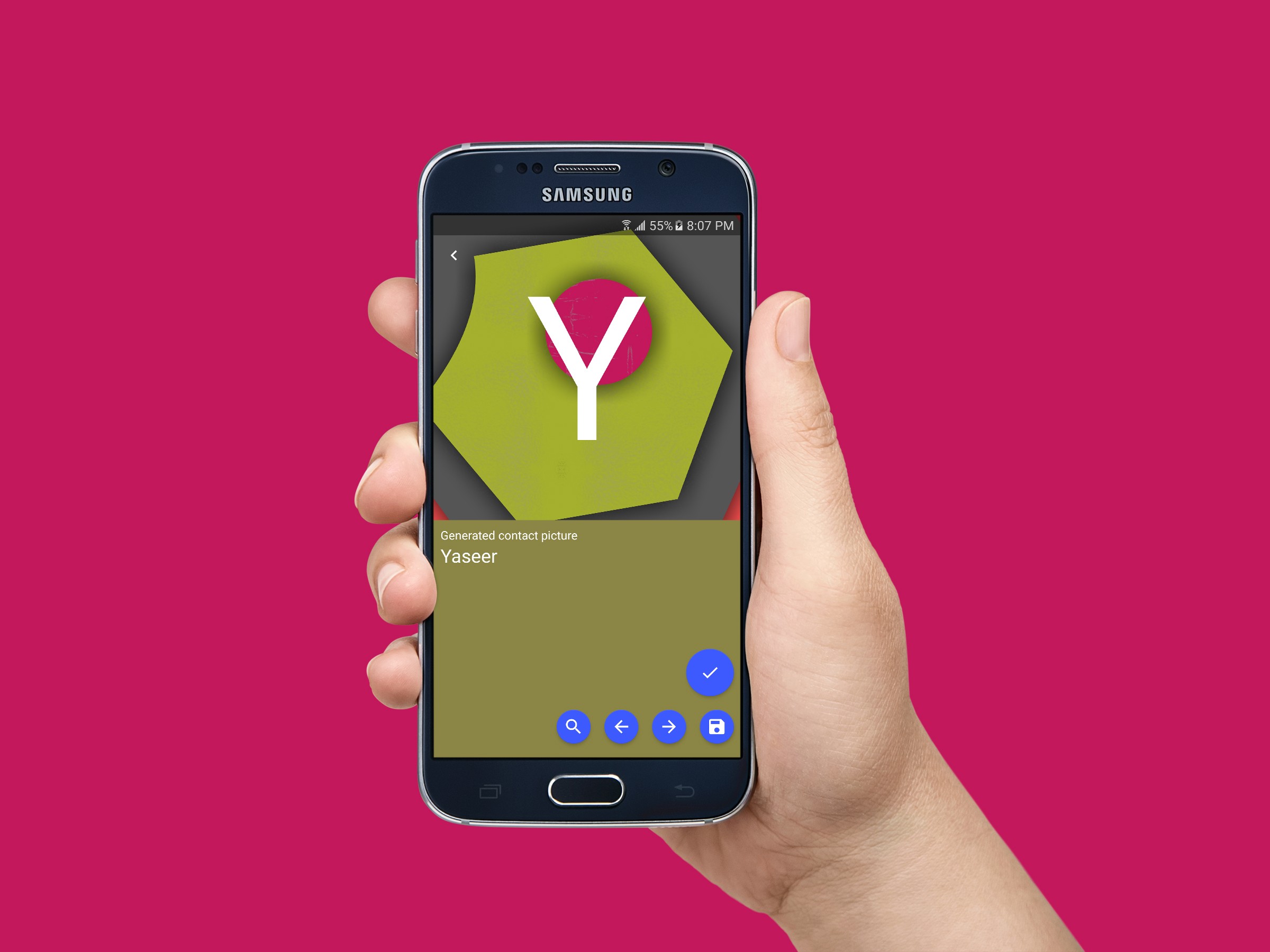 Contact Photo Maker does not use a random number generator to make these images. It exclusively uses contact data such as the phone number, name or the email address and convert these into geometric figures and colors. This way, all of your contacts have a unique image.