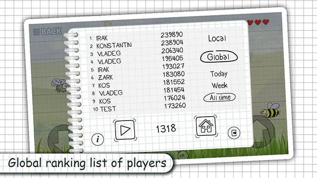 The main feature of the game is the world ranking list of players, which can be viewed both in the game and on the site. There are three tops: the best of the day, of the week and of all the time. And if it’s not so difficult to reach the top of the day, you will have to put a lot of efforts to reach the top of the best of all the time. Another feature of the game is that the characters are flying along the lines, and you need to switch between these lines in order to dodge the enemies. This adds accuracy.