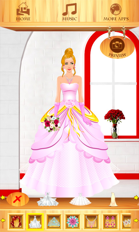 When the wedding day comes, every girl want to feel like a real princess, and to look awesome for her handsome groom. Our girl found her true love, but she needs your help. She is nervous, but also very excited. In this latest fashion designer story you have opportunity to create gorgeous wedding dresses. Use your imagination and become the most popular wedding fashion designer. In this cool beauty makeover you can be the owner of the best fashion boutiques and choose awesome and trendy wedding dresses. If you want to take a part in this dress designer game and travel through amazing dress up story, just download for free Dress Up Wedding and accept this best fashion challenge.