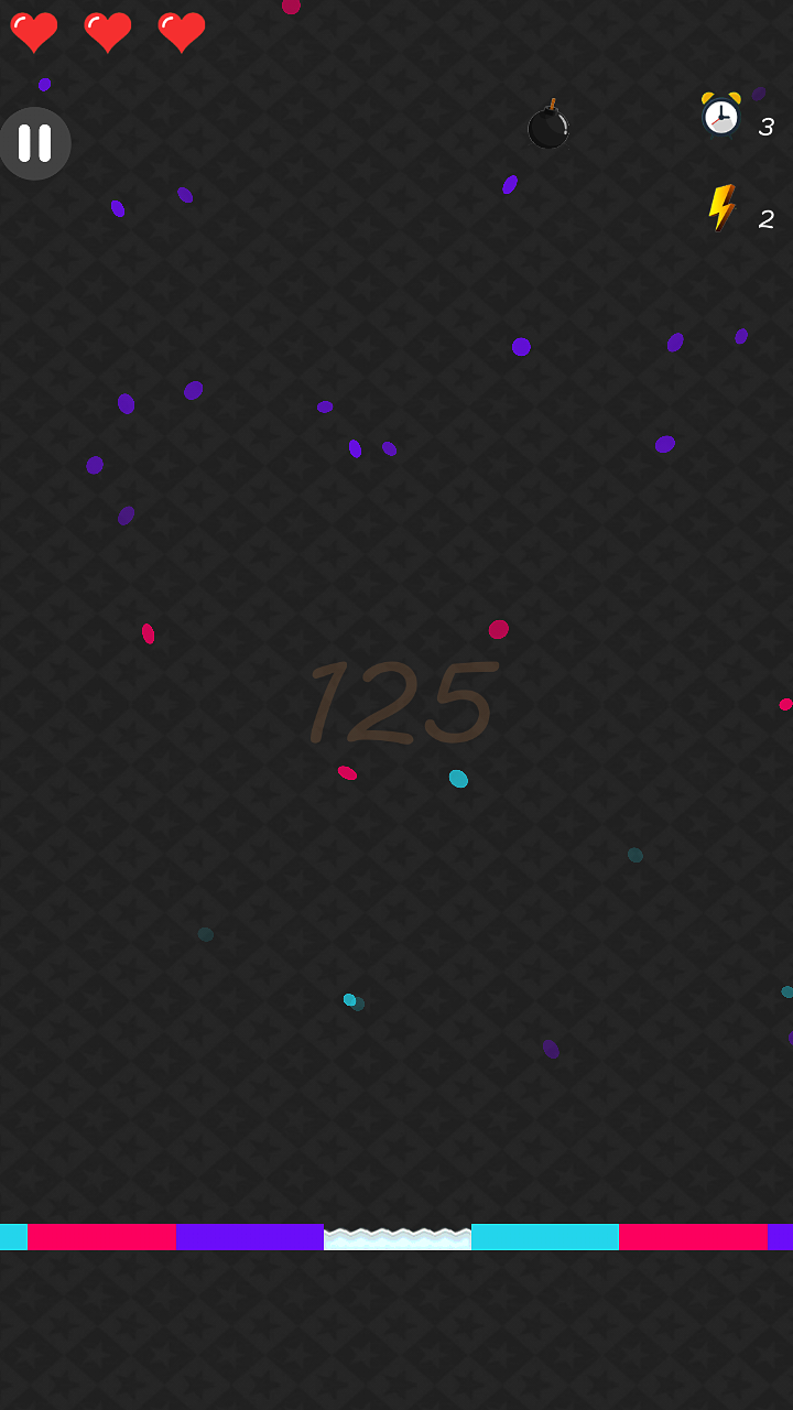 on your screen to beat the speed on falling colored balls. some special balls will switch your whole base to single color bars.