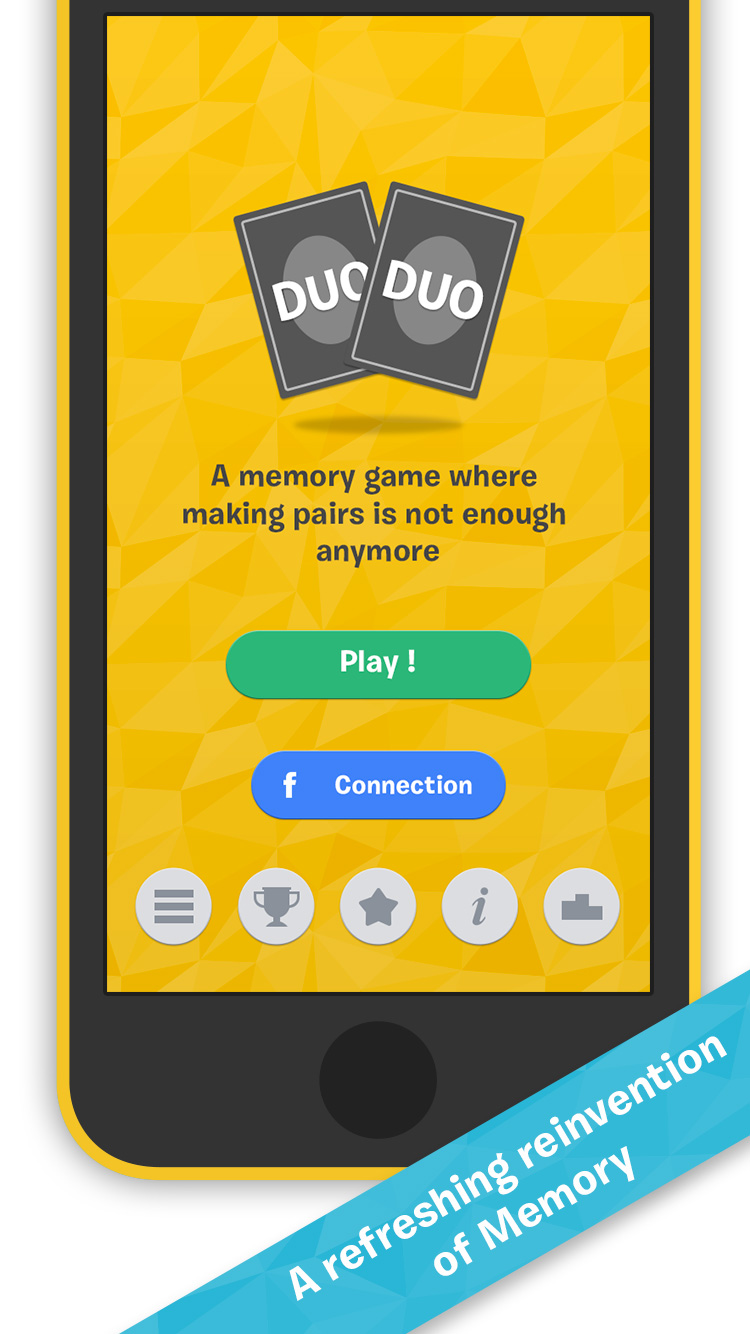 DUO! is a refreshing reinvention of memory where making pairs is not enough any more. DUO! is both fun and relaxing. Take a journey through multiple worlds to explore new challenges and solve mind-stimulating puzzles. To advance, stay concentrated and remember each move you make. Good memory and strategy will lead to new levels packed with wild cards, bonuses and more. Cards will get shuffled, blown up and frozen. Literally! No worries though, there are also boosters to help you along the way for when the journey gets a bit too rough.