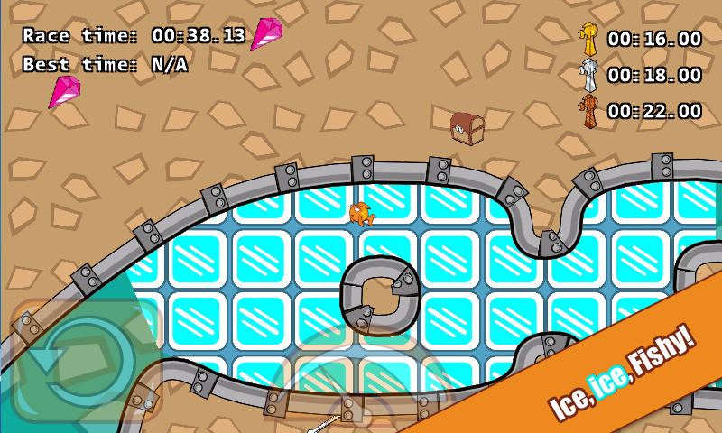 The player is controlling the Goldfish and main task is to try to complete all levels as fast you can to unlock more levels and have better ranking at the leader board. Player uses pipe walls to make fish to go faster to specific direction and collect various “ fruit power ups” to reduce level time. Player needs to avoid the slowing green slime and use red boost points to get even better time. Playing happens by tilting the phone to specific direction or optionally with virtual pad or touch controls.