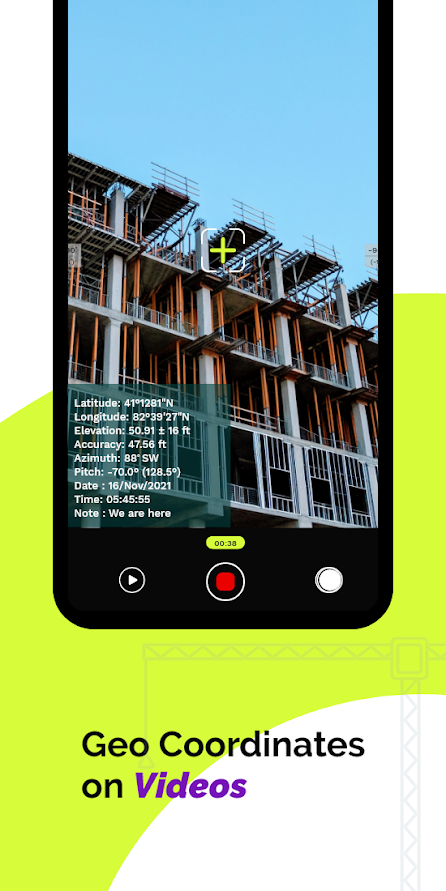 The angular camera is the best geotagging app that enables you to add date timestamp, latitude and longitude to address, pitch angle, your comments or notes, azimuth and altitude to your camera photos and live camera videos.