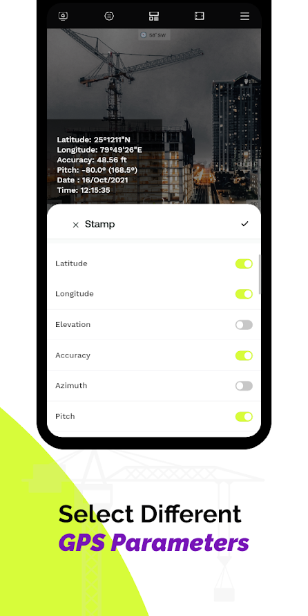 For you, we combined this angular camera app with a Timestamp camera, GPS camera & Notecam. So you can get all the stamps on your photos and videos.