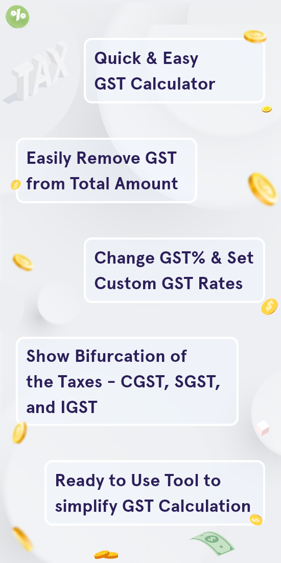GST Calculator - CGST & SGST is ready to use GST (Goods and Service Tax) calculator for finding GST on total amount with CGST, SGST, and IGST. Along with GST calculation, one can use this easy tool as a reverse GST calculator to conduct the reverse calculation of GST.