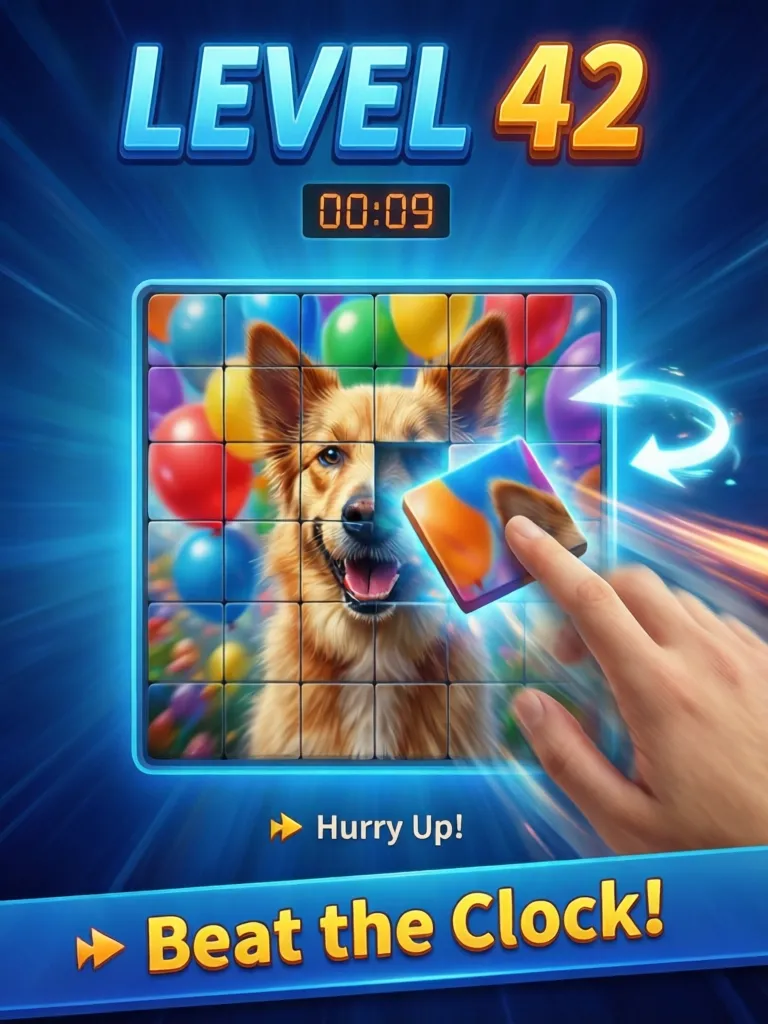 Cards scattered. Picture hidden. One satisfying snap at a time, you bring it back to life.