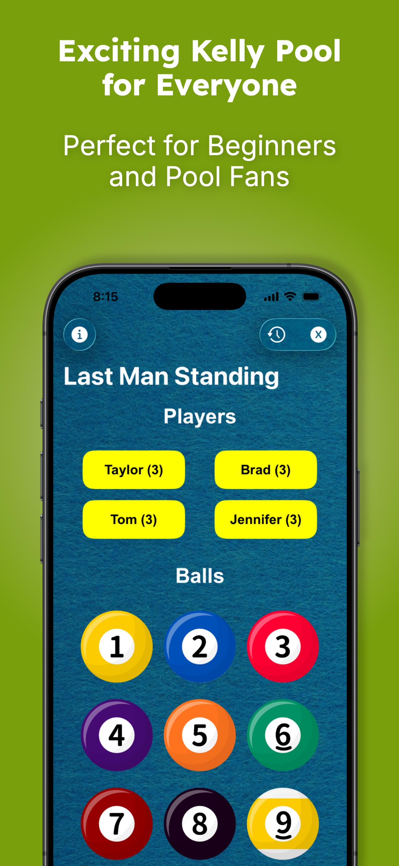 Whether you're playing casually or aiming for the top spot, the Kelly Pool app makes every round exciting and fair.