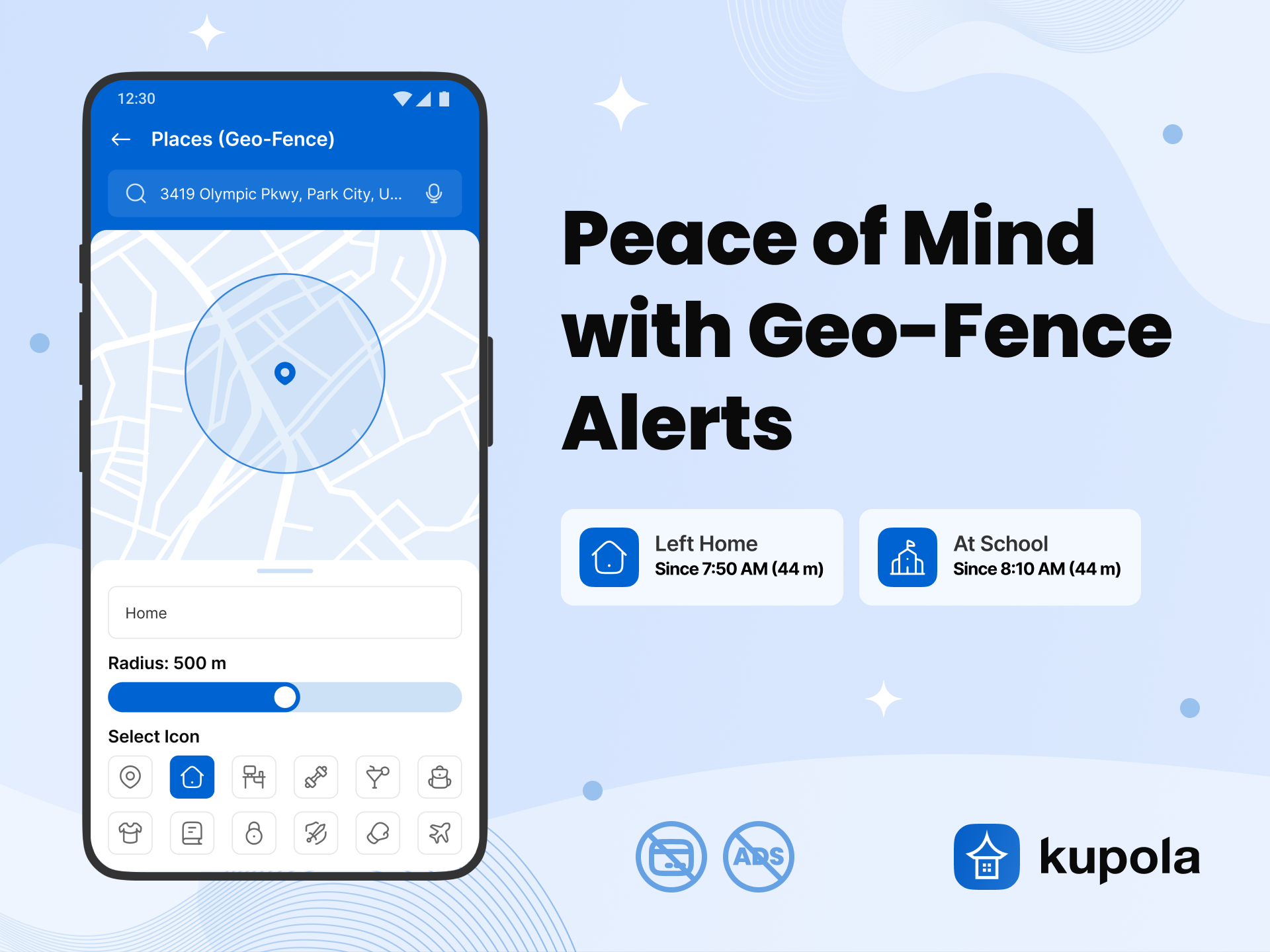 Geofence Place Alerts – Get notified when kids enter/leave saved places (school, home, park)