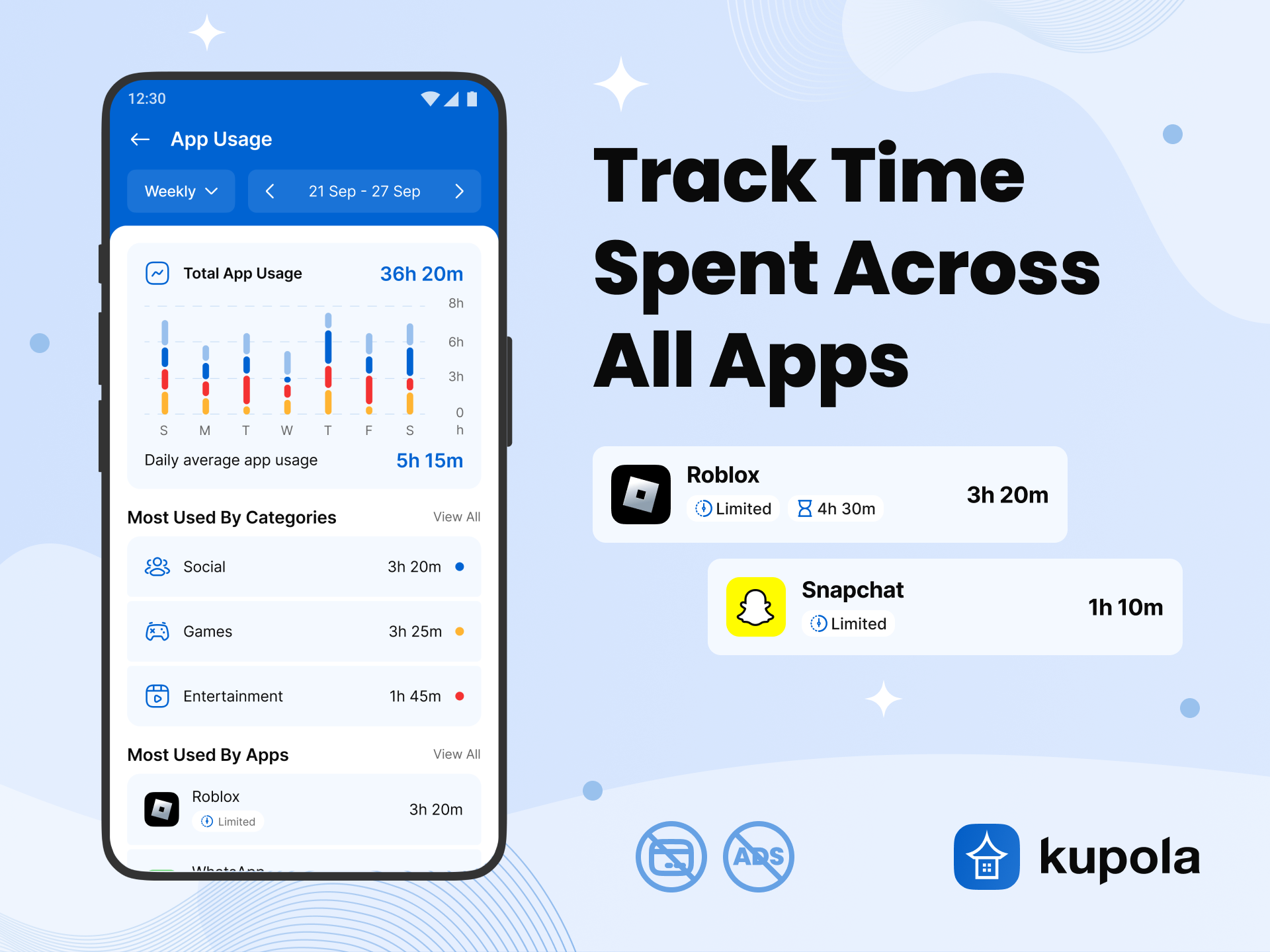 Kupola Parental Control helps families manage screen time, block apps and websites, filter the internet, track location, and keep kids safe. Use the GPS kid tracker, geofence alerts, and SOS panic button to stay connected. Create schedules, set daily limits, review app usage, and encourage healthy digital habits with simple parental controls.