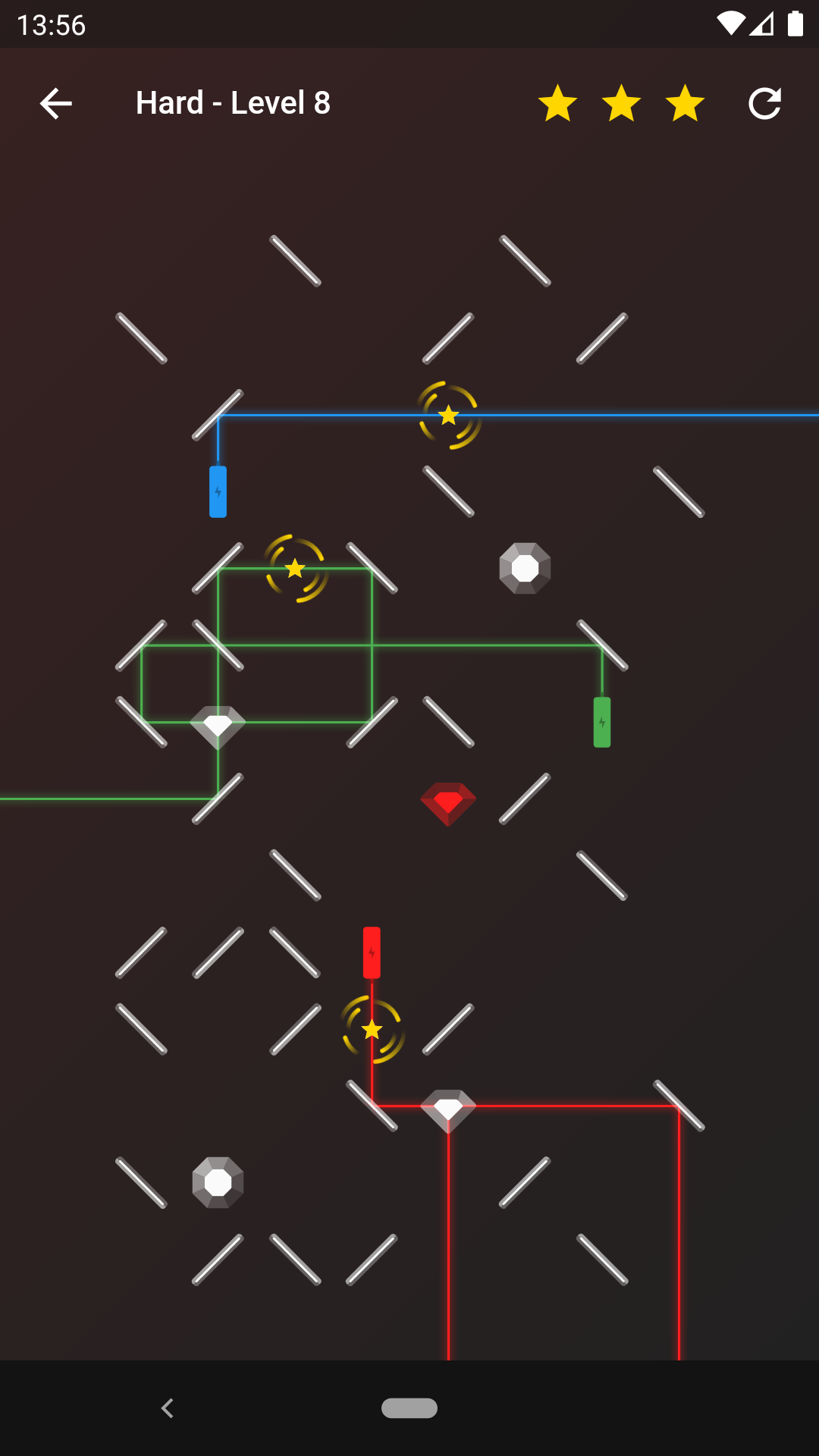 Laser Reflection is a simple puzzle game of lasers and mirrors that you will have to rotate to complete the levels.