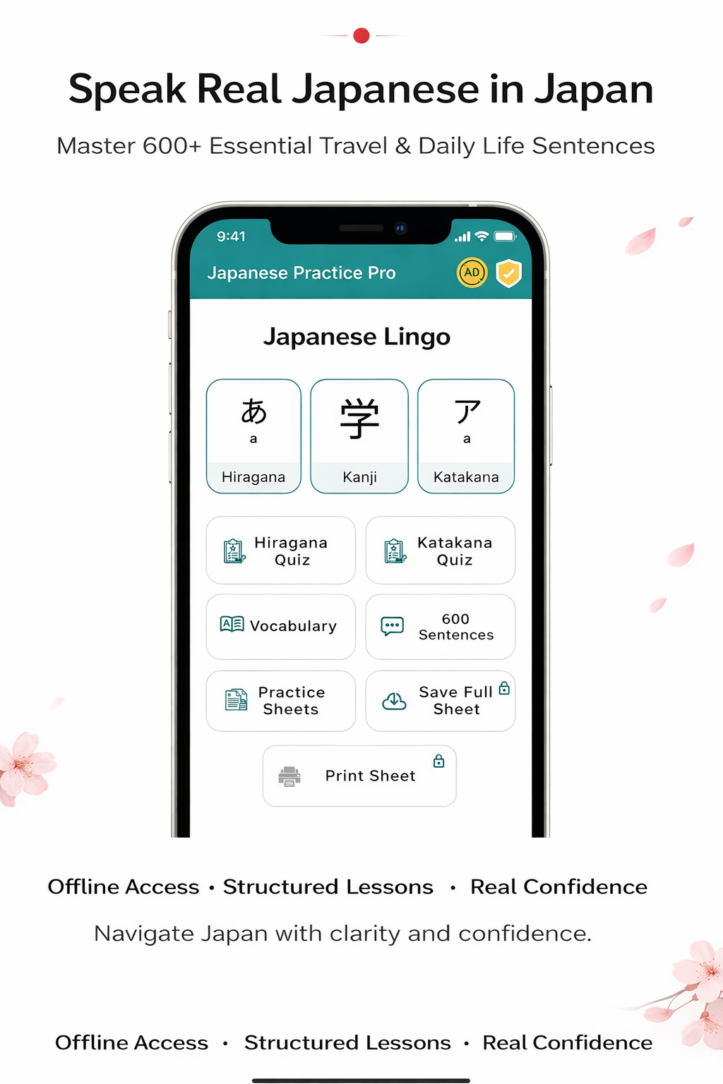 Hiragana & Katakana: Complete 46-character charts paired with crystal-clear native audio.