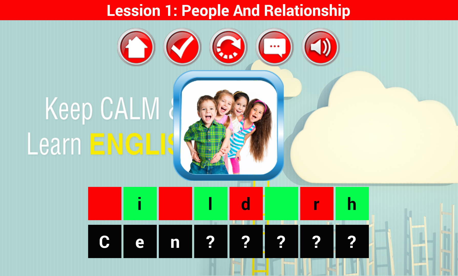 - Lesson playing: program will read word and display image of word; you will re-arrange the letters into correct position to build correct word, if it is difficult for you, press hint to help.