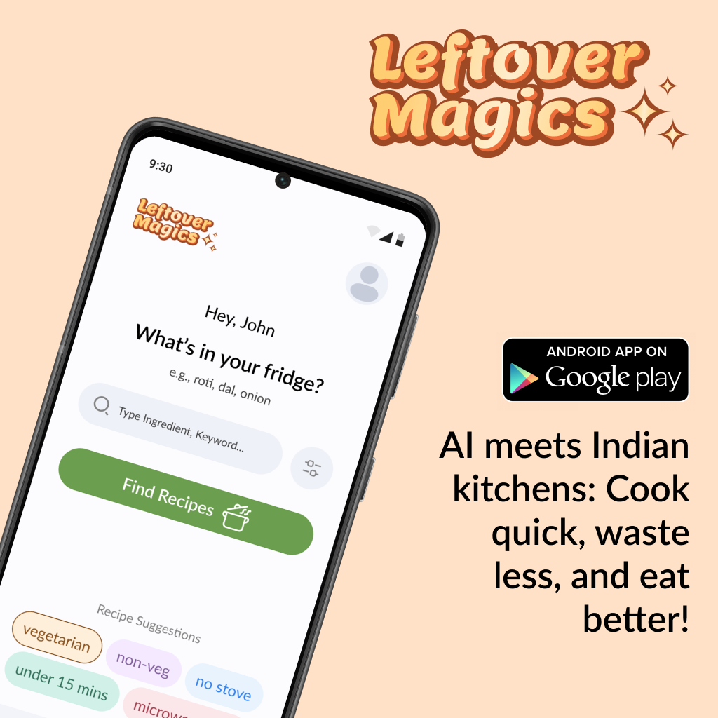Transform your leftover ingredients into delicious Indian meals with this lightweight, AI-powered app. Simply type in the items you have at home, and instantly discover easy-to-follow Indian recipes tailored to your pantry. Save time, reduce food waste, and spice up your daily cooking with creative, personalized suggestions. Perfect for quick home-cooked meals—no more “What should I cook today?” moments!