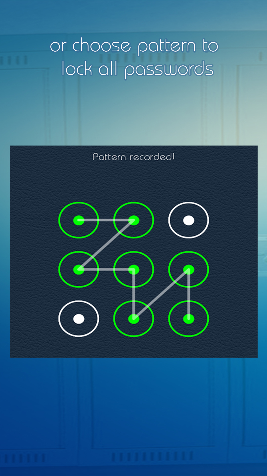 With Locker application you can lock your applications passwords using either PIN or lock pattern.