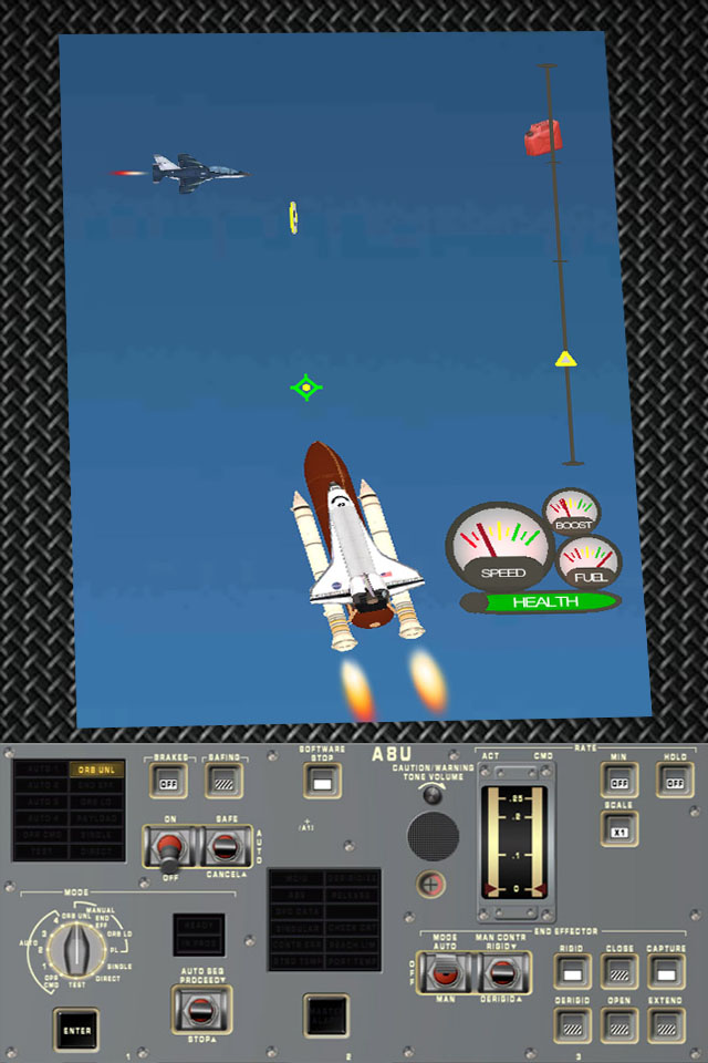 During your flight you'll encounter planes, satellites and comets,asteroids which will lower your health on impact.