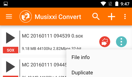 Smart audio converter allows to convert audio files into any standard audio formats available on web. MUSIXXI CONVERT - Supports 100 + Live Audio Formats starting from WAV, OGG, SOX, AMR, FLAC, MP3, to RM. Key feature of the app is that it can able to convert multiple files at the same time without losing the original audio quality.
