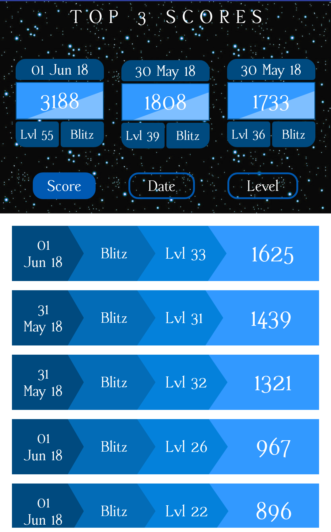 Blitz Mode: Test your concentration with fast, no breaks, unlimited difficulty levels and fun. Complete level 10 of play mode to unlock.