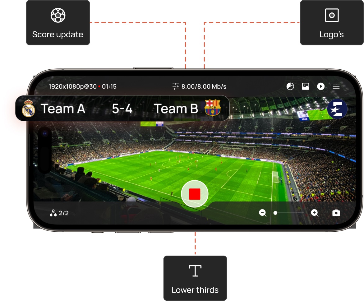 With Omnistream, you can produce live streaming from your smartphone or external camera in the highest video quality possible. You can live stream any event, whether it's a sports event, concert or any other event, and share it simultaneously through our viewing platform, Facebook, YouTube, Twitch and more…