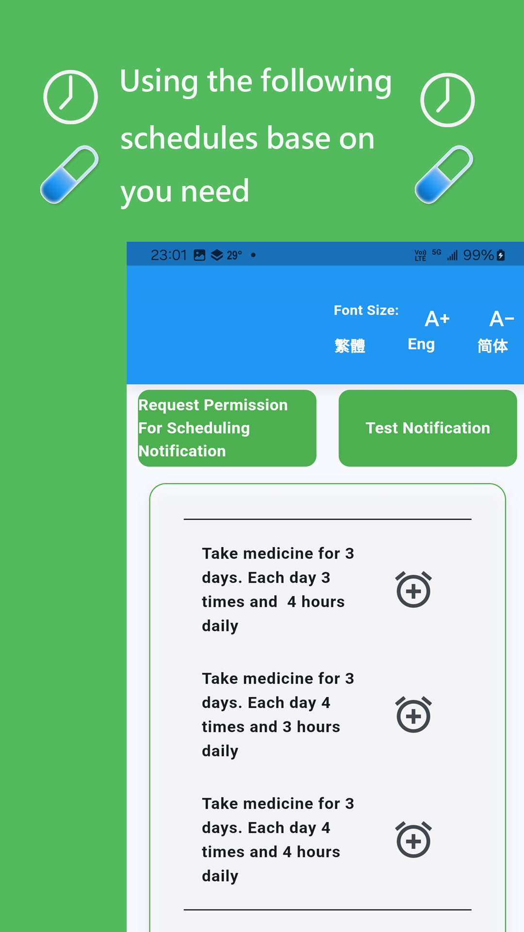 Do you always forget to take medicine? This app "Ontime Hint" can help you. Just a few clicks, you can remind your self to take medicine by setting alarm.