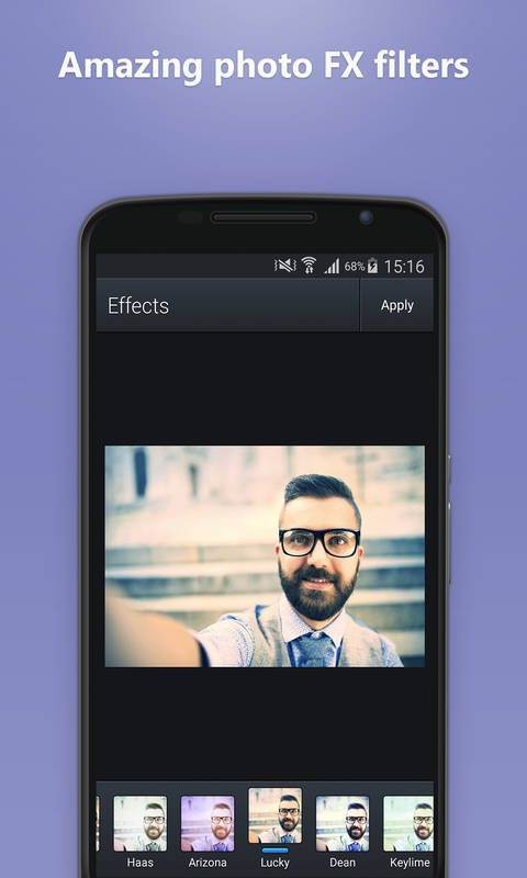 The magic of Photo Editor for Android lies in cool photo effects and carefully chosen photo filters. Just imagine how even a small imperfection on your selfie or a photo with friends can disappear if you use photo editor pro features. You will never have to worry about how you look on Facebook or Instagram, because with this photo editor pro app, its cool photo effects and best photo filters, you can do no wrong!