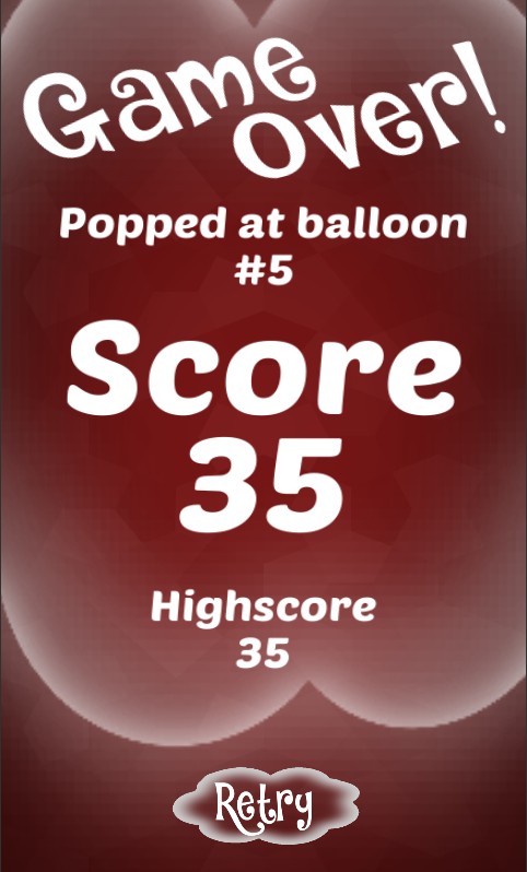 Popalloon is a highcore based casual game in which your aim is to blow up your balloon and try not to pop it. You have only one chance, however you get one more if you are connected to the internet and willing to watch a video.