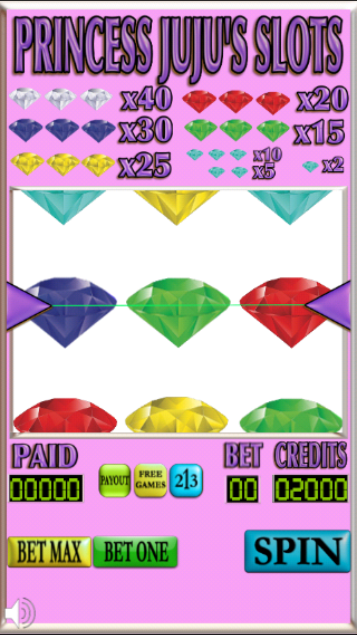 Princess Juju's Slots is a fun & easy game to play. You'll get 2,000 credits for FREE! Make a single bet by pressing the "BET ONE" button then press the "SPIN" button