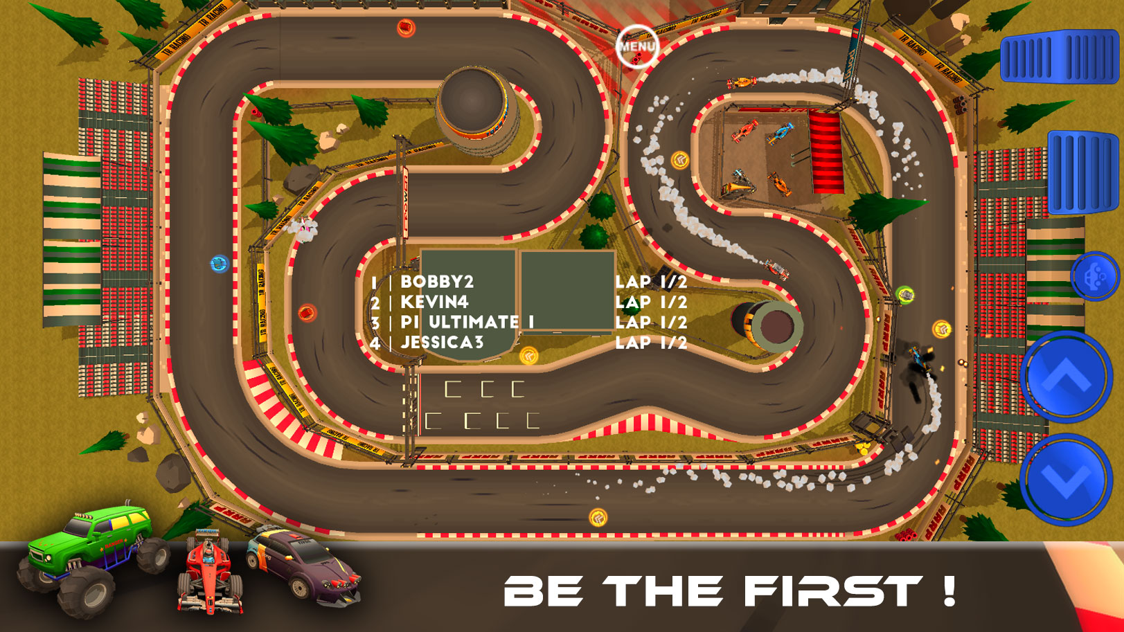 Fascinating two-player one-screen experience. Play this multiplayer mobile racing game with your friends on one device. Select racing series like: Drift Racing, Formula 1 and Monster Trucks. Unlock tracks filled with random obstacles and exciting bonuses like speed gain or rocket launcher. Select cars and race against your friends in 2 player mode or AI in single player mode. Crash your enemies and ram your way to first place.
