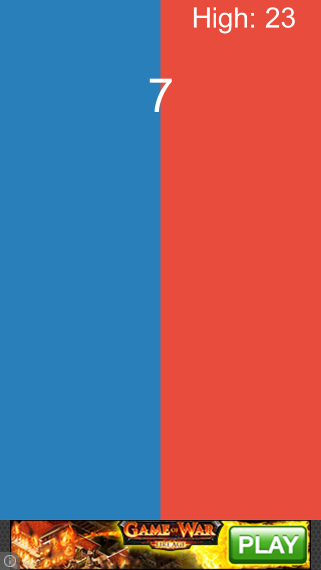 The objective of RedBlue is to click the red tile, then the blue tile, then red, then blue, then red, then blue and so on. This is made difficult by the tiles switching after every successful tap and by a time limit between each tap. If you tap on the wrong color or take too long to tap a color, the game will end!