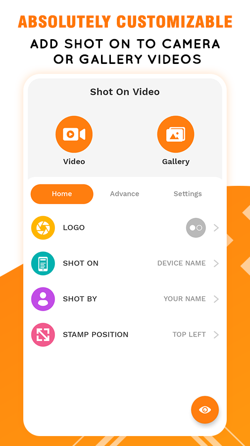 ‘Shot On Video Stamp: ShotOn Stamp Camera & Gallery’ is designed to auto add ‘Shot On’& ‘Shot By’ watermark logos : ‘Shot On (Device Name)’ and ‘Shot By (Your Name)’ on Videos in one go.