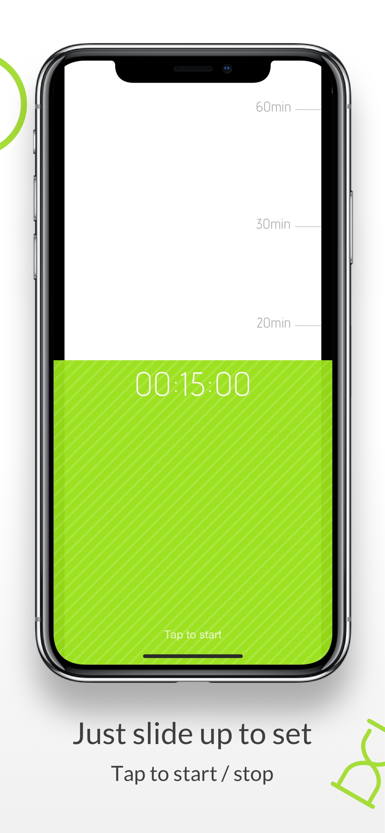 The simplest timer available. Beautifully designed and repeats over and over again. When the time is up you'll get a double buzz and the session will repeat just like that!