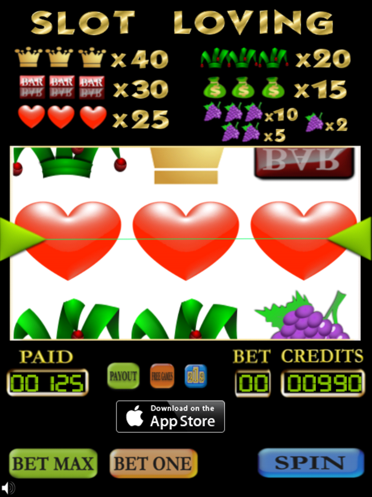 Slot Loving shows you love by giving you 1,000 credits for FREE! Make a single bet by pressing the "BET ONE" button then press the "SPIN" button
