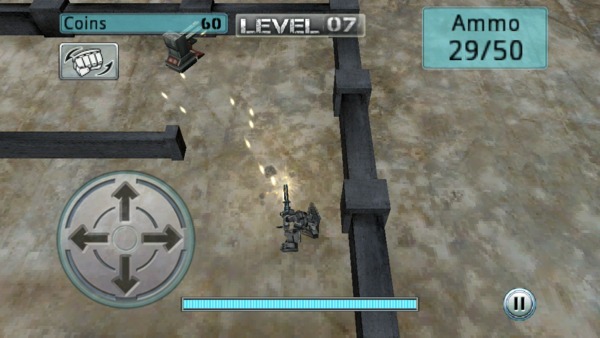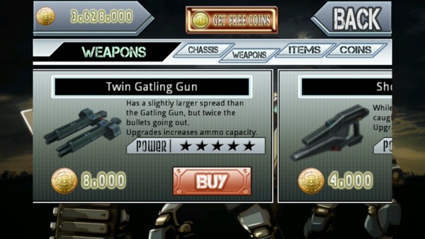 In Steel Smasher, there are CAMPAIGN mode and SURVIVAL mode. The former provides 50 stages and the latter is the endless mode. After defeating the enemies, the player can collect coins that can later be used to purchase new mechs and weapons, or upgrade existing ones.
