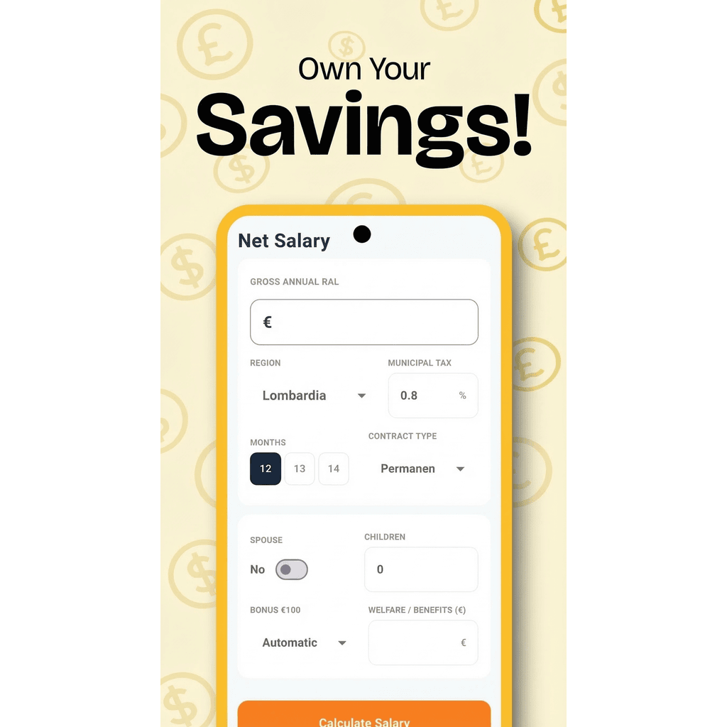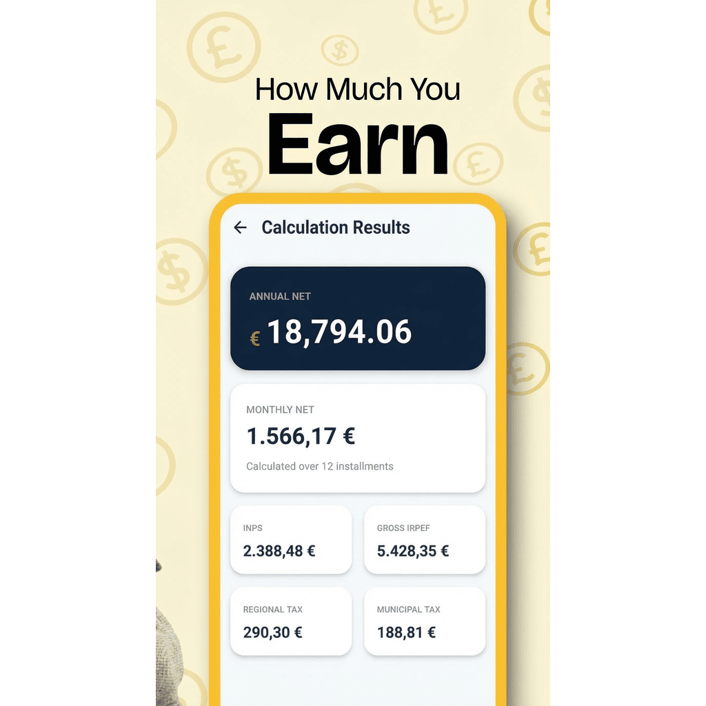 Stipendio Netto Calcolatore ti aiuta a stimare in modo semplice e veloce il tuo stipendio netto in Italia a partire dal tuo RAL (Retribuzione Lorda Annuo). Inserisci i dati principali e ottieni una stima dello stipendio netto annuo e mensile, con un riepilogo chiaro dei contributi IRPEF, INPS e delle imposte aggiuntive.