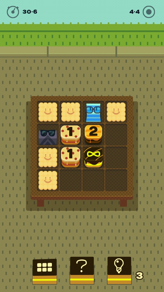 ÔùÅ Cubch fills all cells horizontally and vertically with the cookie of happiness if there is no cakes or hamburgers.