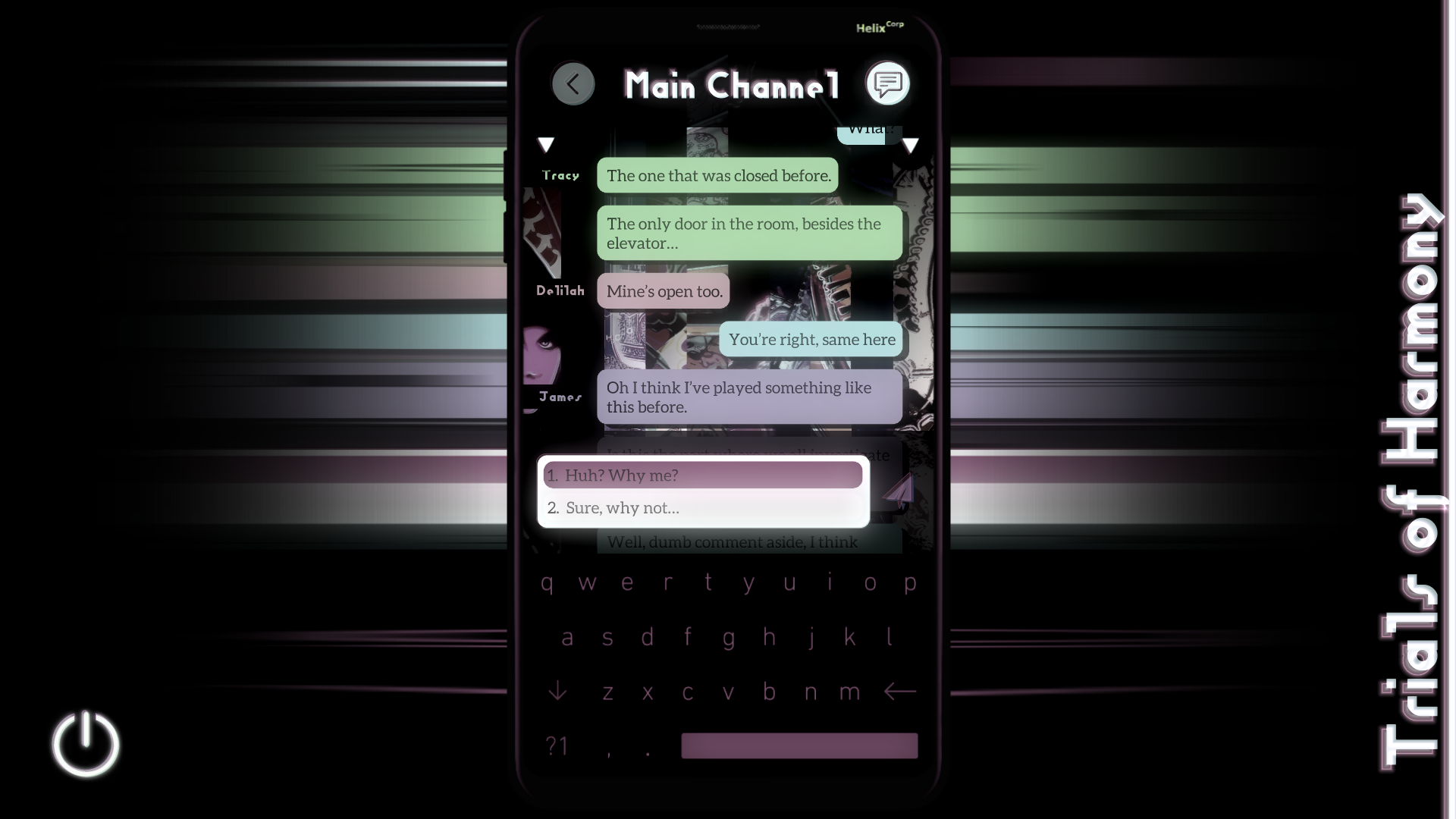 Trials of Harmony is an interactive fiction novel told from a mobile messaging app perspective.
