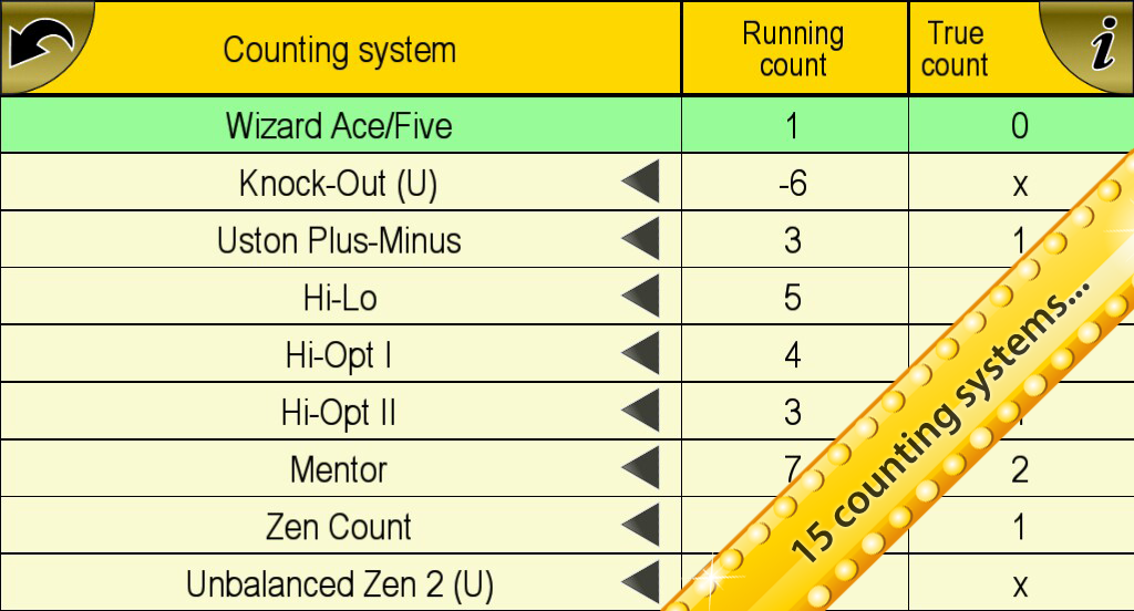 ★ custom casino editor with all well-known as well as many lesser-known rules (38 parameters! hole card, surrender, dealer peek, penetration, number of decks, continuous shuffling, doubledown rules...)