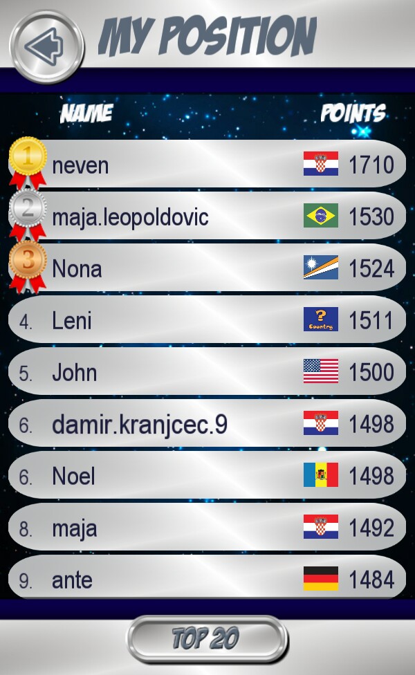 The game features global leaderboard with scoring system based on ELO rating (like in chess).