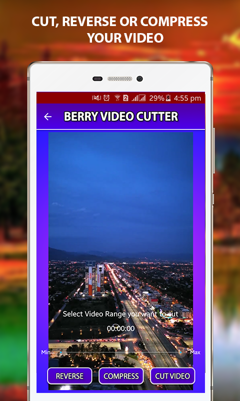 Video cutter enable your easy video cutting and editing with compress and reverse video. Best quality app for cutting videos in HD. Reduce your videos size and make video shrink using the ultimate video cutter app. Video Cutter Compress and Reverse app is used to cut the longer video to reduce the video in a better way using Video Cutter Compress and reverse app which easily edit Videos into MP4 using Video Conversion to make the video quality better.