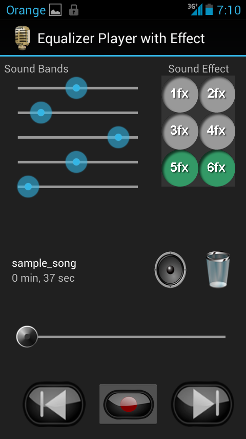 Different interface for record screen, record list screen, equalizer player screen and sound effect.