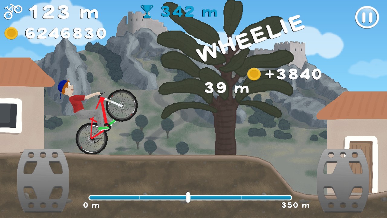 You've got grandma's old bike, and now you can begin your career! The objective is to do a wheelie for as many meters as possible. The controls are simple, just gas and brake. The longer the wheelie, the bigger the bonus! Just be careful you don't fall off in the middle of doing a wheelie, otherwise you won't get the money.