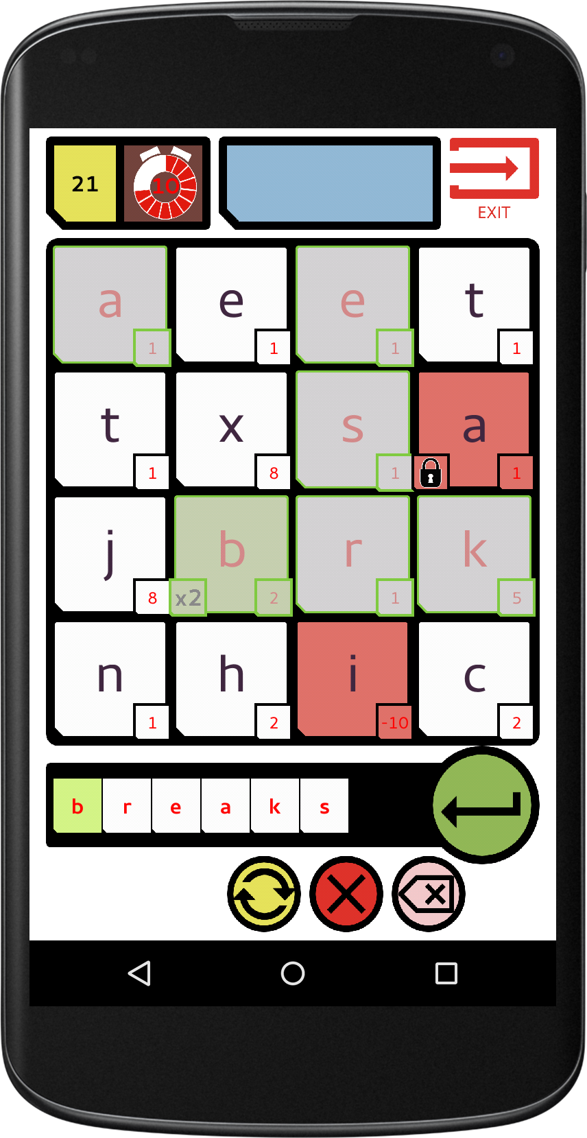 WordSmash is a fast action word game for Android phones and tablets. Race against the clock to find as many words of three letters or more as you can. Collect points and bonuses as you go. Increase the time on the clock by finding more and longer words but watch out for penalties. Will you hold your nerve as the clock runs down?