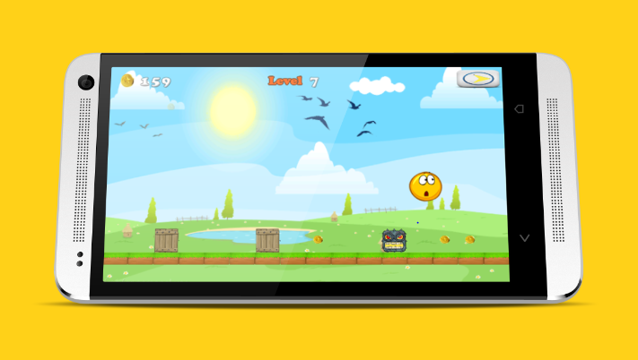 Yellow Ball would like to collect more coins. But there are many hindrances: Boxes, Stone, Monsters, etc. Please help the Yellow Ball by running and jumping.